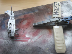 under the wing tanks and puttying, sanding and re-scribing the wing tanks and