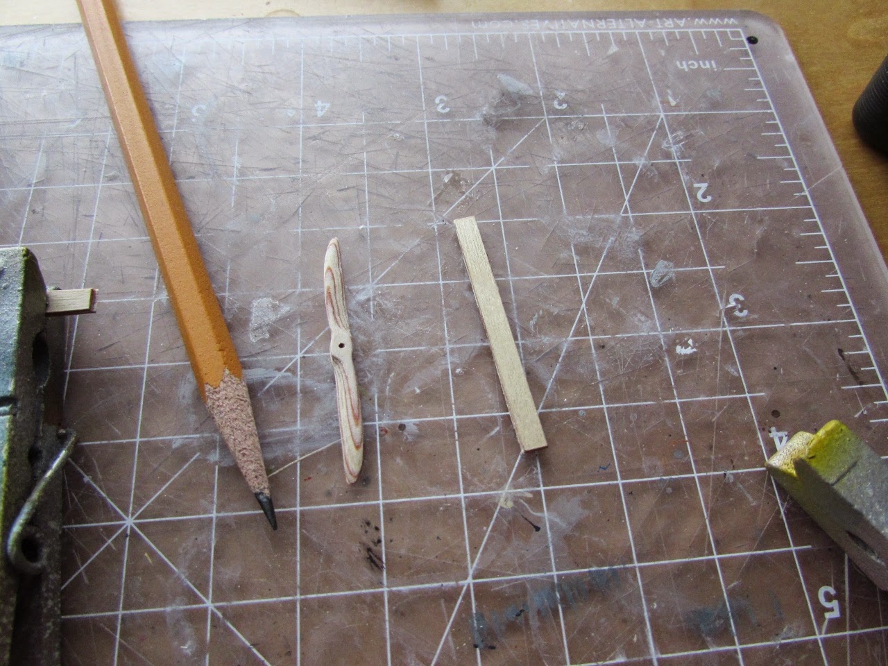 The metal control horns are fabricated. Meanwhile, all the needed holes for rigging and locating elements are drilled in the wings: