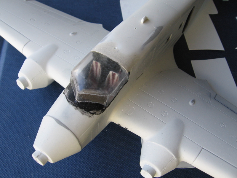 As references were being consulted (thanks Fabrizio D’Isanto and Fabio Beato) it was evident that a number of details had to be erased from the original kit, like the “hunch”, the lower fuselage gondola and some of the windows. Props had to be re-worked, a suitable interior scratch-built, and a few details added.