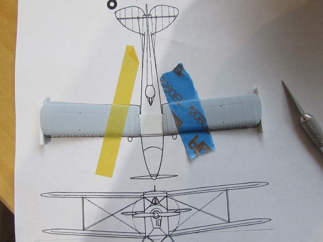 I cut apart the lower wing panels, gave them the needed dihedral and