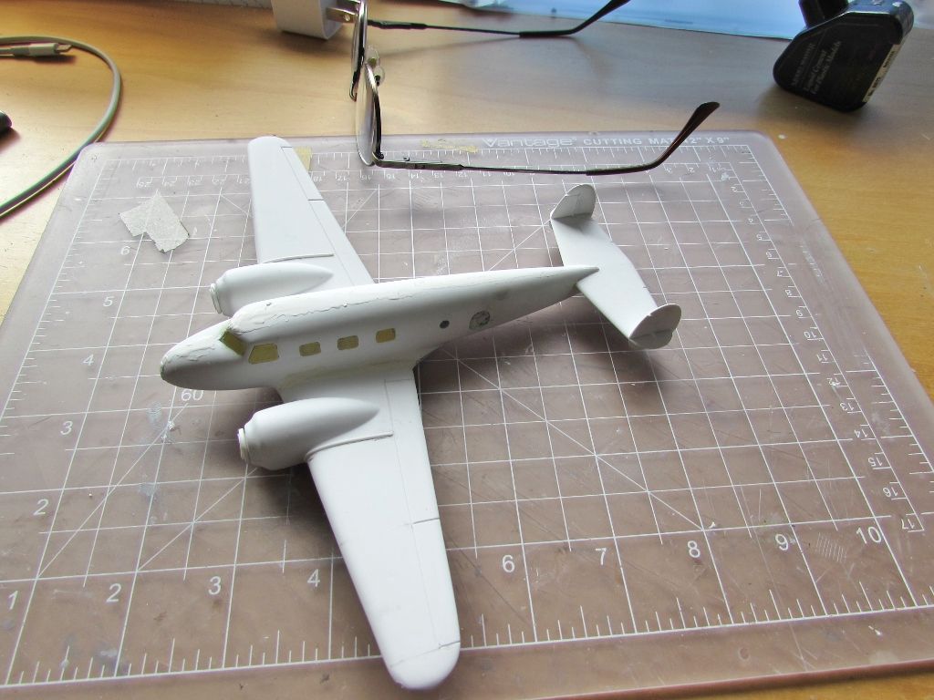 Inner "N" float struts assembled. Passenger seats scratched, pilot-copilot seats and control wheel from spares box: