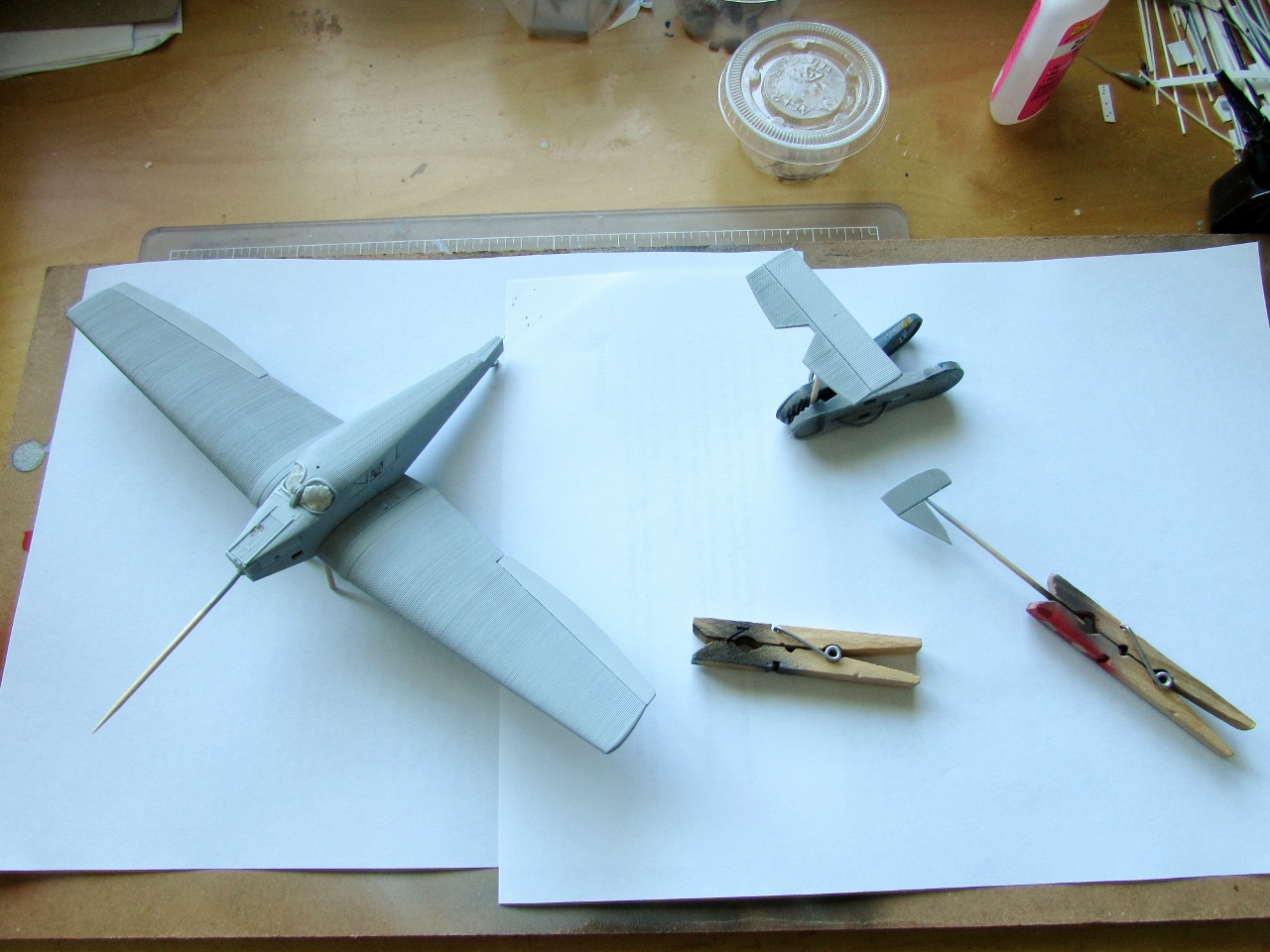A bit of paint work on the props while the yellow dries:
