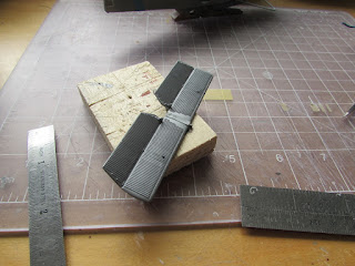 Just to further complicate the build, I decided to try to add the guides and sliding windshield panels. Very thin clear plastic (of the type that comes with the printed instruments for the PE panels) and very thin wire are used to make the panels.
